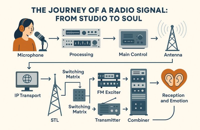 A listener’s radio tunes to the frequency, demodulates the carrier, and turns the signal back into audio. Speakers vibrate. Ears capture those vibrations. Brains decode them into memory, mood, and meaning. A chain of technology designed for one outcome: human connection.
